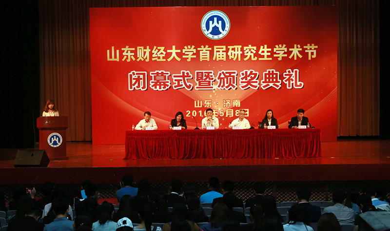 5月8日下午,我校首届研究生学术节闭幕式暨颁奖典礼在舜耕校区校礼堂举行。副校长胡文波、党委研究生工作部部长岳德军、学科办公室主任毕秀玲、校团委书记刘奇耀、党委研究生工作部副部长宫丽华出席闭幕式,来自上海财经大学、西南财经大学、南京财经大学、山西财经大学、安徽财经大学、天津财经大学、浙江财经大学、山东大学、山东师范大学、济南大学、山东建筑大学、山东工商学院等高校的获奖研究生代表和研究生会主席们,各学院分管研究生工作的党委副书记、研究生辅导员以及全体研究生参加了闭幕式,闭幕式由研究生院院长韩作生主持。