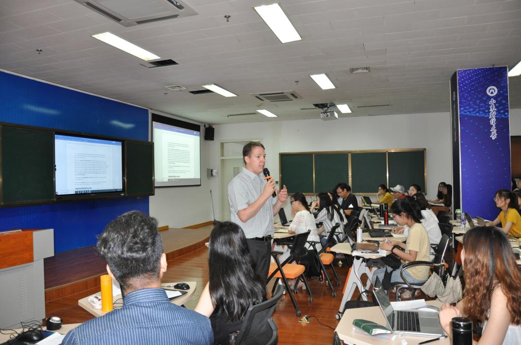 2019年7月18日,山东财经大学首届研究生暑期国际学校管理学课程暨开班仪式在燕山校区举行。加拿大约克大学管理学院Andreas Strebinger教授受邀来校授课。来自全校管理学学科的51名在校研究生参加学习。开班仪式由研究生院副院长杨明海主持,研究生院院长毕秀玲出席并致辞。研究生院相关工作人员参加活动。