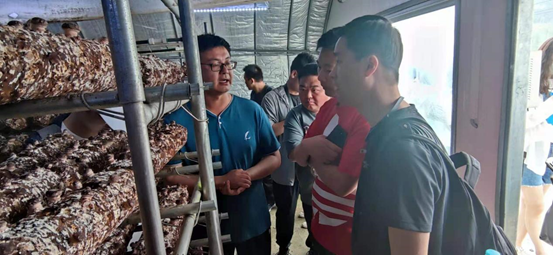 上午,师生一行首先来到食用菌基地。乡村振兴学院副院长张凌云介绍了这片土地巨大的变化发展,带领师生了解食用菌种植、加工、出口、再利用的绿色循环产业链,这一链条带动了当地经济和就业,培养了大批优秀技术人才。