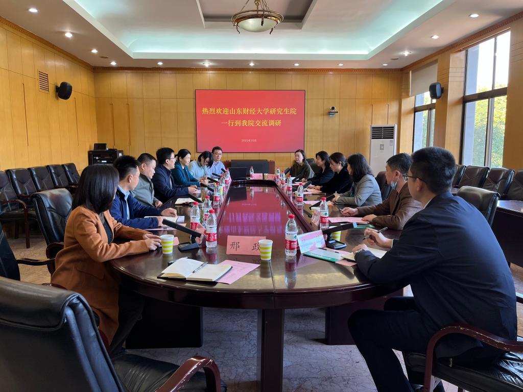 10月10日,山东财经大学研究生院到山东师范大学千佛山校区调研学位与研究生教育工作。山东财经大学研究生院院长彭留英,副院长王丽萍、纪云卿、刘若斌,山东师范大学研究生院院长郑元杰、副院长陈蓁蓁、王太峰,两校研究生院相关负责同志参加调研。