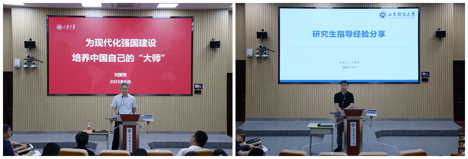 刘国亮以《为现代化强国建设培养中国自己的“大师”》为题,详细阐述了建设中国式现代化教育强国的时代方位、培养中国自己的“大师”的使命坐标、构建拔尖创新人才培养体系的原则遵循、研究生教育改革创新专项领域的山大行动四方面内容。他希望导师们心怀“国之大者”,争做“四有”好导师,为党和国家培养“最具创造力的研究生”。于新亮阐释了研究生导师和学生关系的权责边界。并结合自身指导经历,针对如何培养更高水平的研究生介绍了通过组建以导师为中心的科研团队来提升研究生科研水平的具体实践及成效。他希望导师们带领研究生进行学科社会实践,参与地方改革难题攻关,在加强师生协作的同时构建和谐的导学关系,提升研究生的社会责任感。
