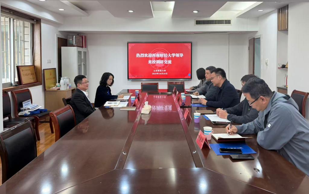10月25日下午,西南财经大学研究生院院长王珏一行来校交流座谈。我校研究生院院长马恩涛,副院长刘伟全、纪云卿出席本次会议,双方相关科室负责人共同参加。