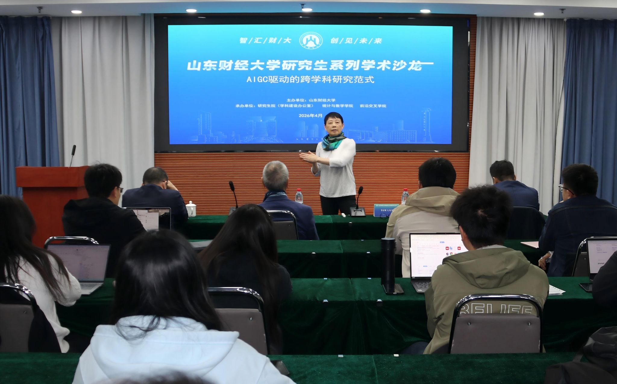 4月9日下午,研究生系列学术沙龙第九期在舜耕校区举行。本期沙龙聚焦“AIGC驱动的跨学科研究范式”,特邀英国雷丁大学亨利商学院数字人才学院院长LIU KECHENG、英国雷丁大学计算机科学系主任SUN LILY作主题报告。统计与数学学院院长田金方主持活动。